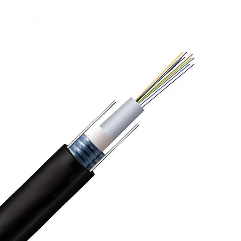 ประสิทธิภาพการทนต่อแรงกระแทกระหว่าง PSP และวัสดุปิดกั้นน้ำแบบท่อหลวมจะถูกนำไปใช้เพื่อให้สายมีขนาดกะทัดรัดและกันน้ำได้ลวดเหล็กคู่ขนานสองเส้นวางอยู่ที่ทั้งสองด้านของเทปเหล็กเพื่อให้มั่นใจถึงความต้านทานแรงดึงสายเคเบิลมาพร้อมปลอกโพลีเอทิลีน (PE) ชิ้นเดียวเหมาะสำหรับการติดตั้งในสภาพแวดล้อมทางอากาศหรือท่อสำหรับการสื่อสารระหว่างสำนักงานเครือข่ายในเมืองเครือข่ายการเข้าถึงและเหมาะอย่างยิ่งสำหรับสถานการณ์ที่คาดว่าเส้นใยที่มีความหนาแน่นสูง